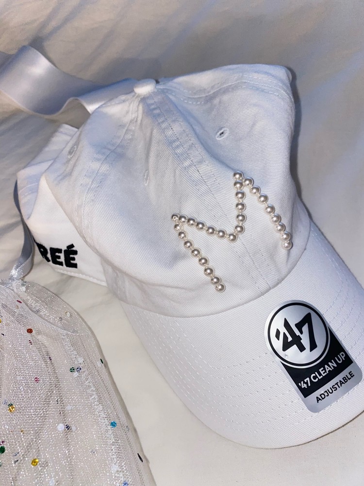 Allow me to introduce the 'JUJU' cap, adorned with our signature Swarovski pearl and crafted with love.